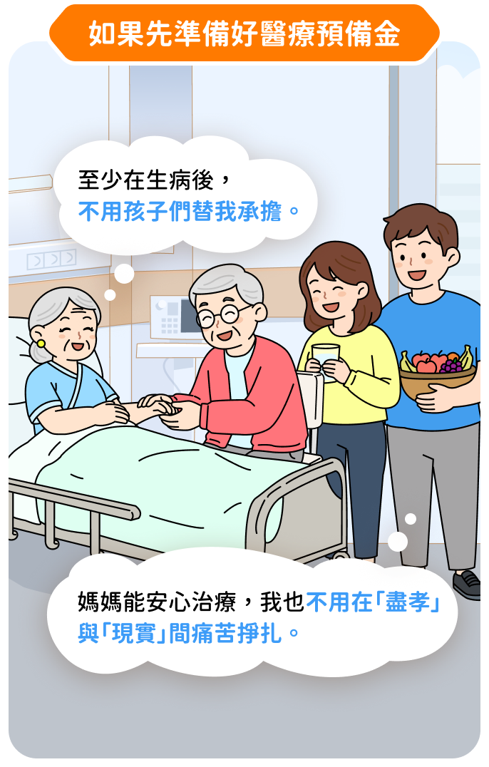 提早準備醫療預備金,不必因為費用而放棄更好的治療